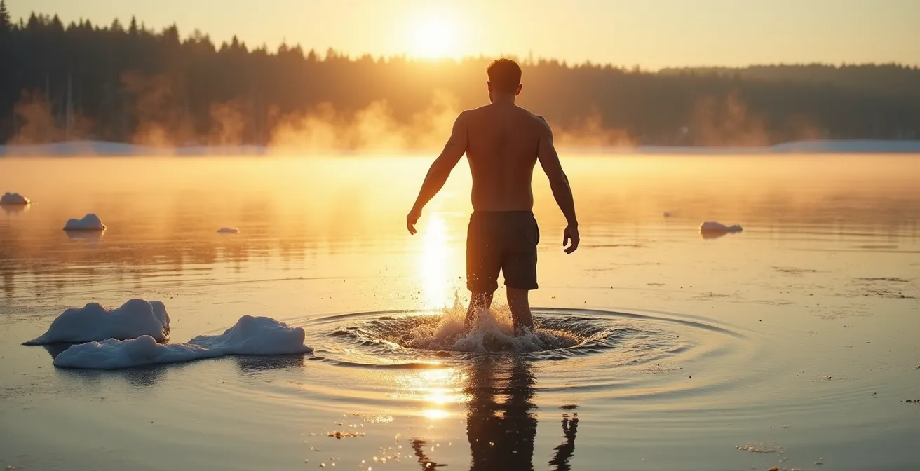 Viele glauben, der Einstieg ins Eisbaden sei ein reiner Härtetest, eine Frage von Willenskraft und Zähnezusammenbeissen. Man hört Ratschläge wie „einfach rein und durch“ oder dass kalte Duschen allein als Vorbereitung ausreichen. Doch diese Ansätze übersehen den entscheidenden Mechanismus, der Sicherheit von Gefahr trennt. Es geht nicht darum, den Schmerz zu ertragen, sondern die Reaktion des Körpers zu verstehen und zu steuern. Was wäre, wenn der wahre Schlüssel nicht im Aushalten liegt, sondern im aktiven Kontrollieren? Wenn nicht die Kälte Ihr Gegner ist, sondern die unkontrollierte Panikreaktion der ersten Sekunden?